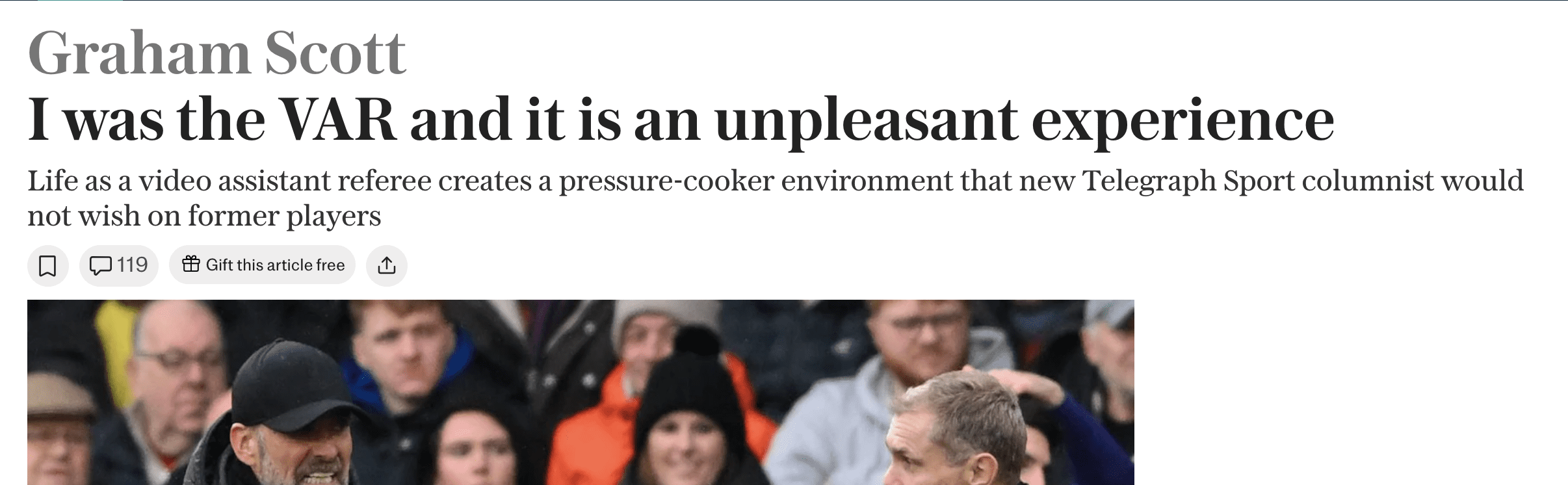 Ken has read some heart-breaking testimony from the VAR headquarters at Stockley Park, and he brings that to us today. Distressing as it may be to hear, it is vivid, essential listening.